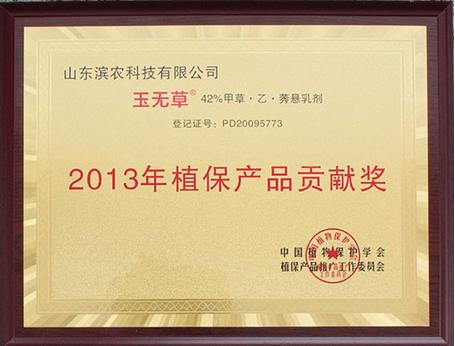 產(chǎn)品“玉無草”(42%甲·乙·莠去津懸乳劑)榮獲“2013 年植保產(chǎn)品貢獻獎”,